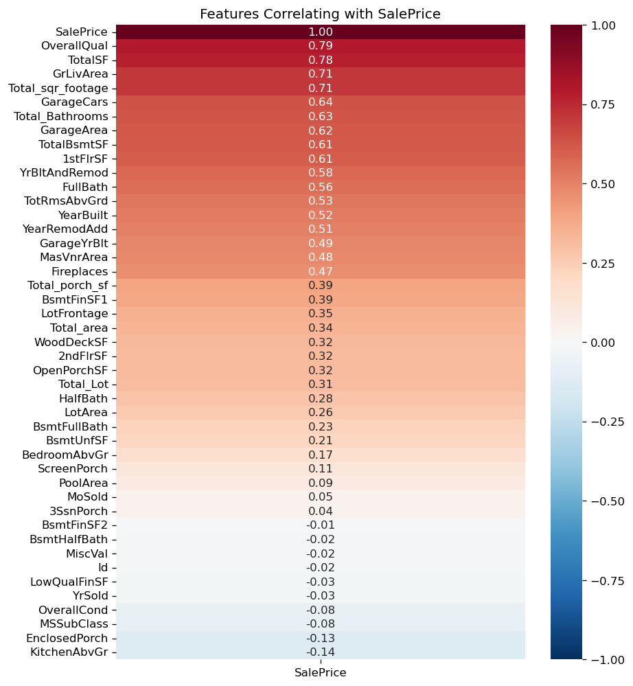 Correlation Heatmap with Targer Variable (house prices)