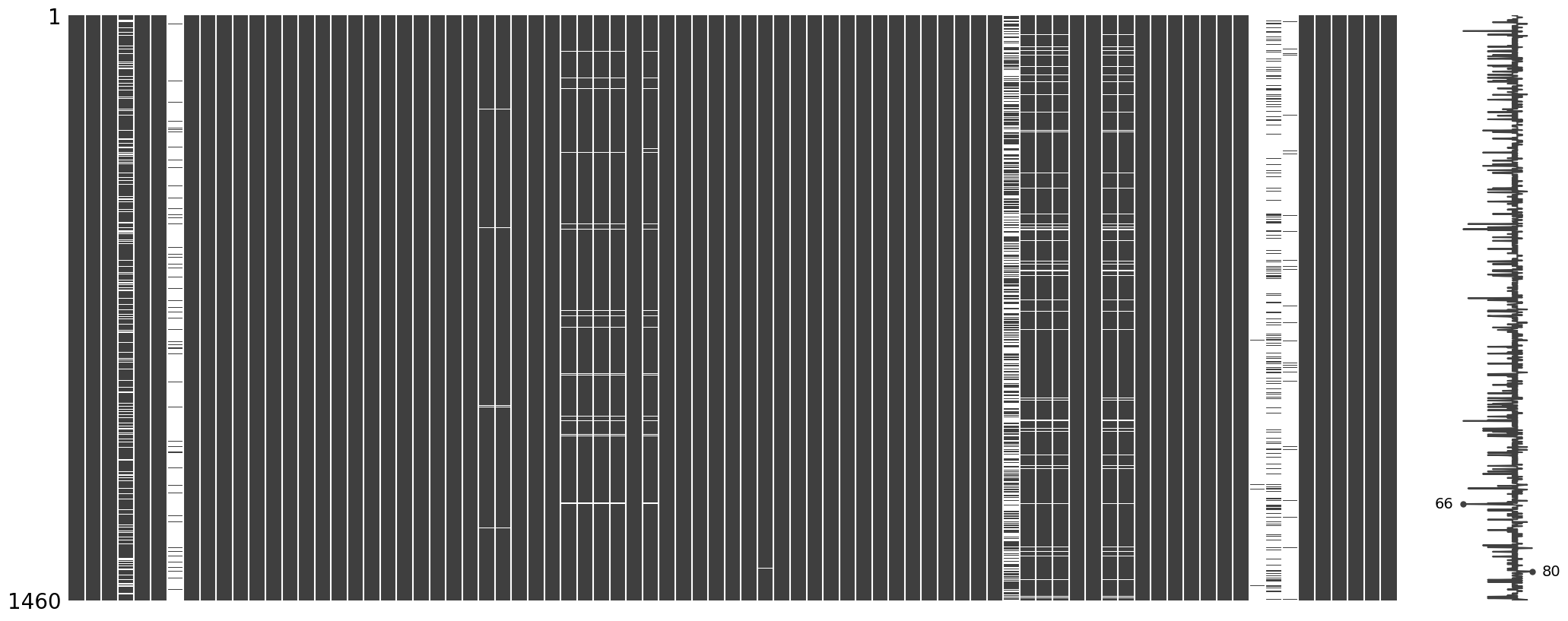 - Total 1,460 rows for training set, 1,459 rows for test set.