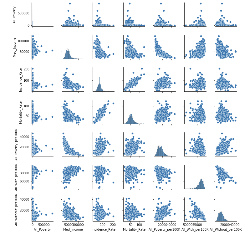 However, one concern in the pairplot is that All_Poverty looks like an exponential distribution and thus transformation is needed.